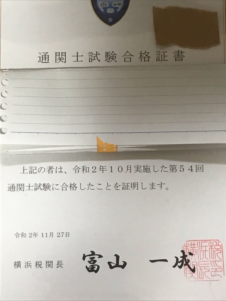 2020年度54回の通関士試験を受験し、2科目受験で無事合格することができました。