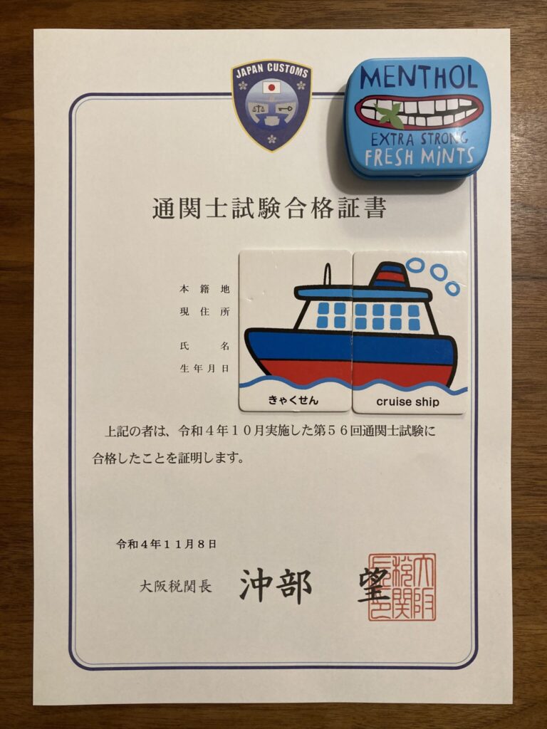一生物の通関士試験合格証もですが、イヤイヤ期真っ盛りの子供たちと慌ただしい日々を過ごす中、一年かけて自分なりに真剣に取り組んだ末に合格できたという経験こそが、私にとっては最も誇らしいです。