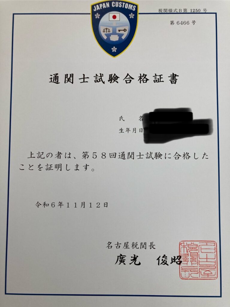 もち さん(38歳、男、一人娘。海貨業者の船舶代理店勤務 2024年度合格 受験回数7回)