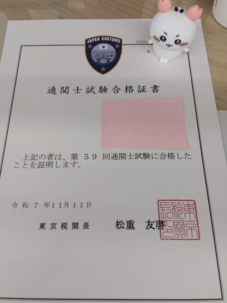 中々勉強が進まなかったり辛い時もありましたが、今年絶対に達成する目標として通関士試験合格をかかげていたので無事合格できてほっとしています。