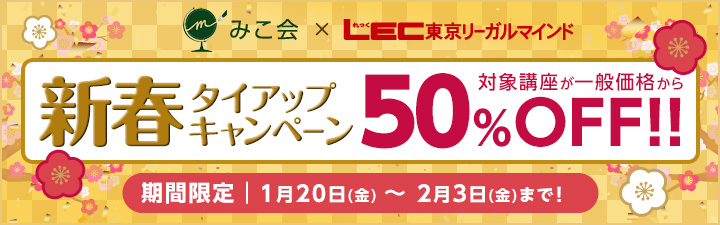 大手資格スクールのLECさんとみこ会がタイアップして、通関実務の単科講座や全国模試を大幅割引するキャンペーンです。みこ会メンバーではない方もご購入いただけます。