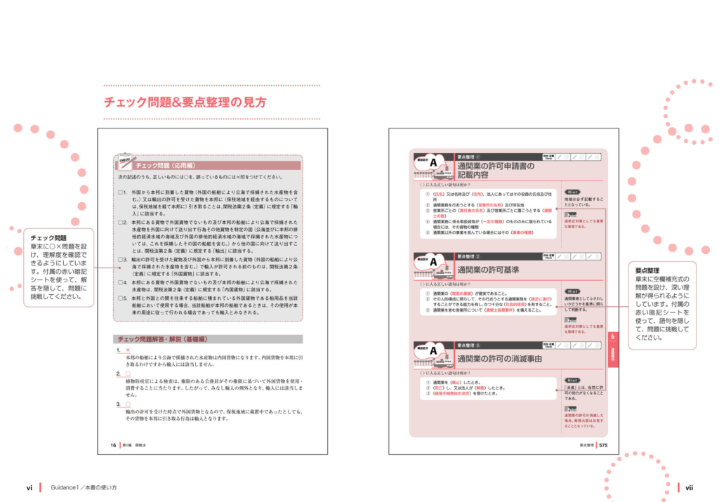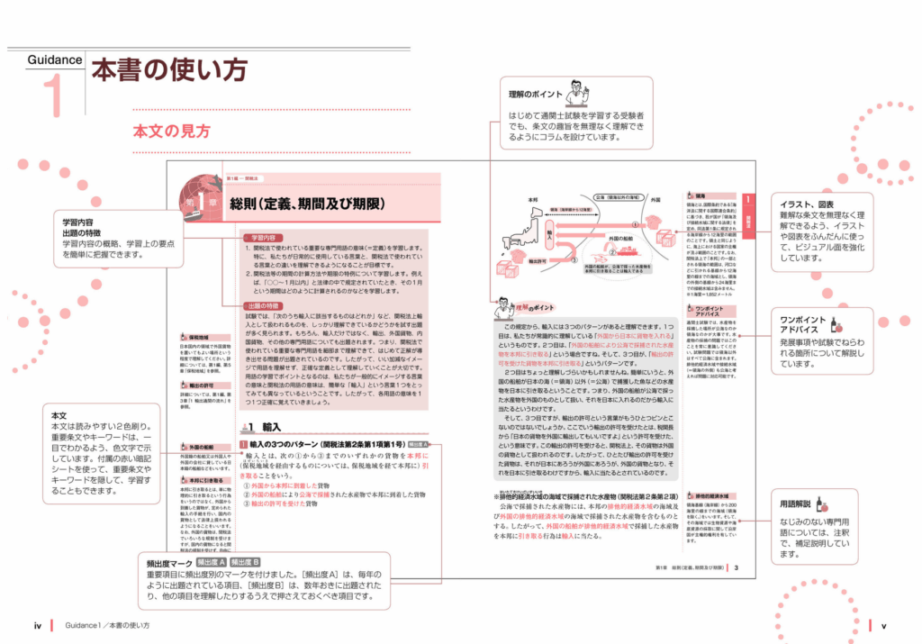 通関士試験では、自分が今どこに位置づけられることを勉強しているのか、という意識がとても大切になります。そこで、学習内容を最初に理解しておくことで、位置づけを理解しやすくなります。また、出題の特徴を知ることで、試験に沿った形で知識を入れることができます。